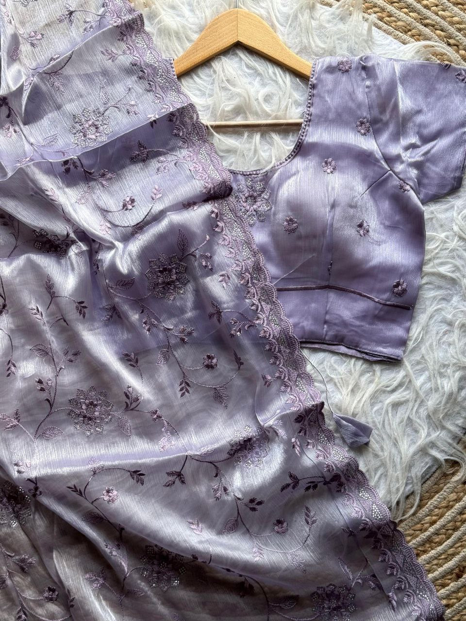 Work: Embroidery Viscose Thread Work With Hotflix Work In Saree