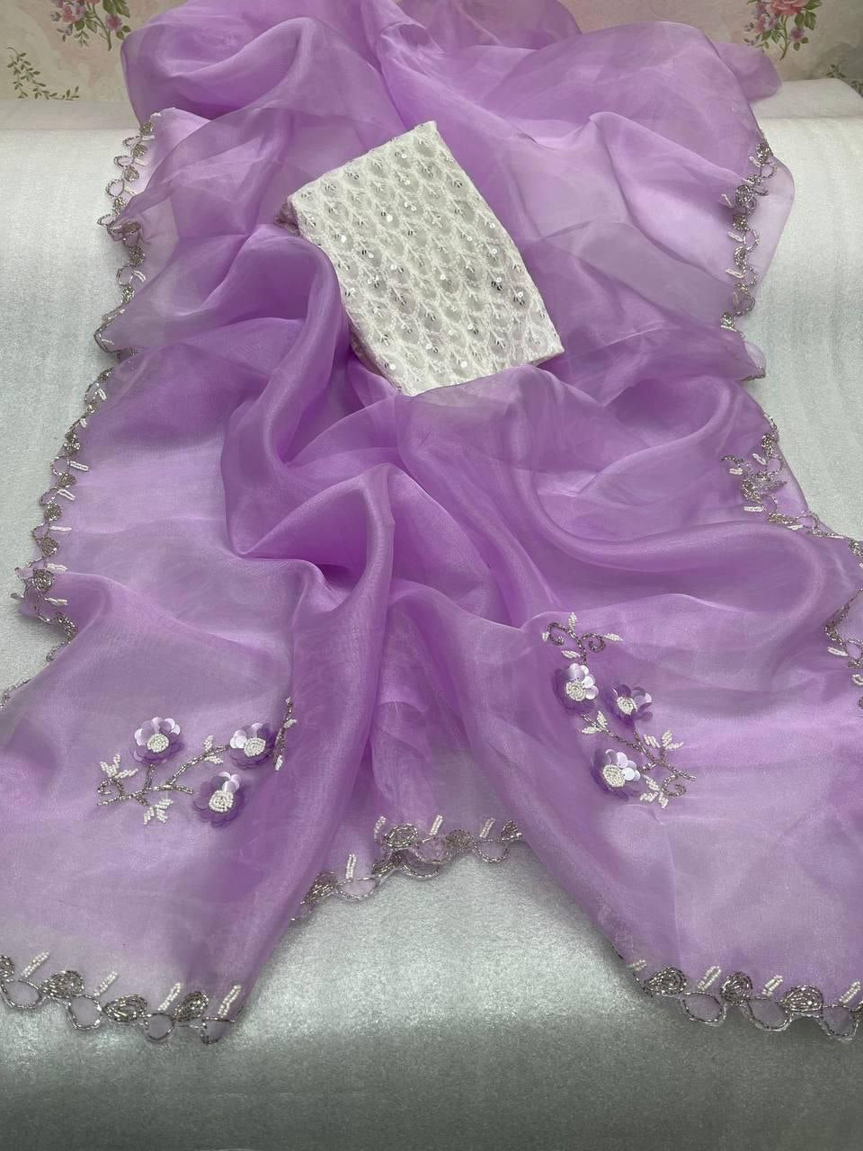 - Luxurious Fabric: Experience the delicate and luxurious feel of our glass organza sarees, perfect for special occasions.