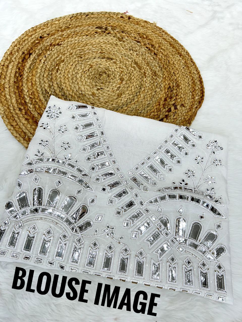 - Embroidery Organza Saree: Intricate embroidery work for a regal and luxurious appeal.