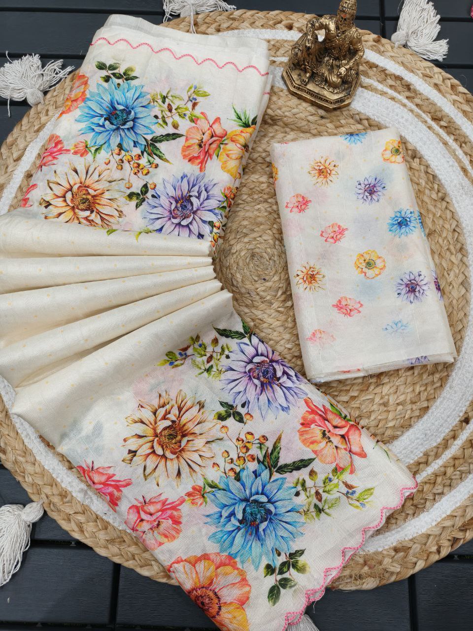 Work: Floral Digital Print All Over Sarees Attached With Perfectly Matched Pallu
