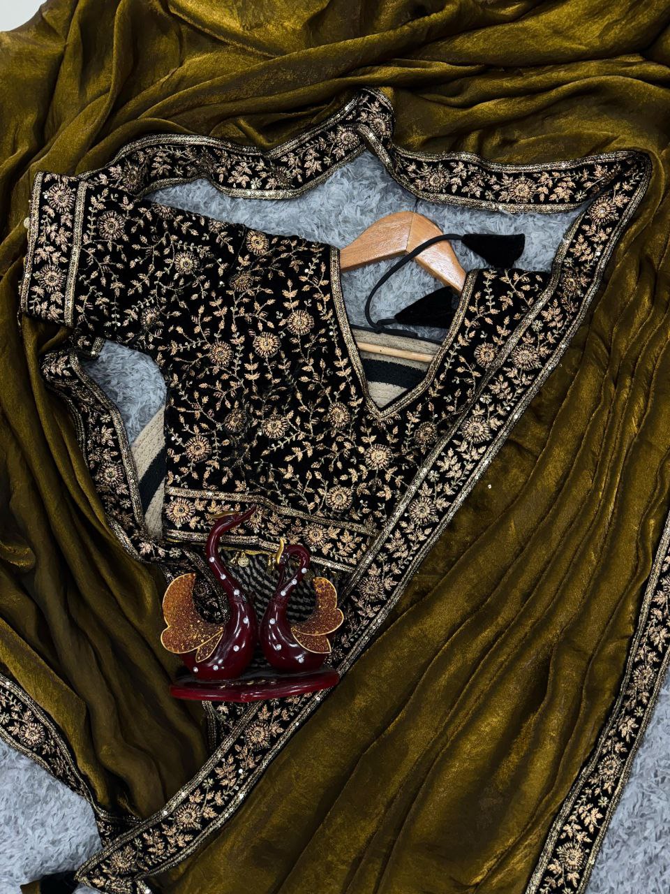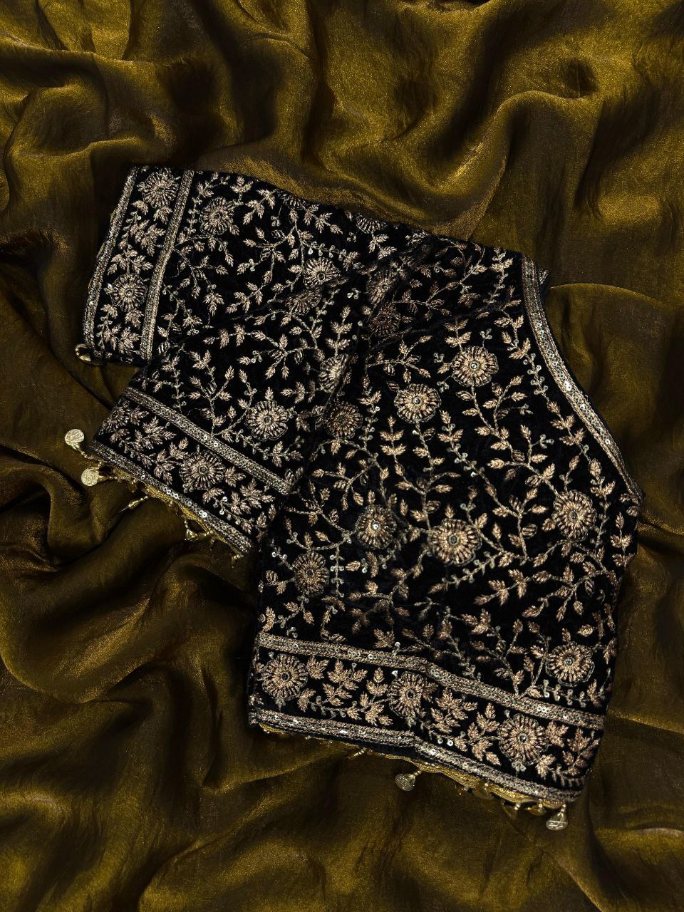 Blouse Material: Sequin and Zari Embroidery work in Viscous Velvet Blouse