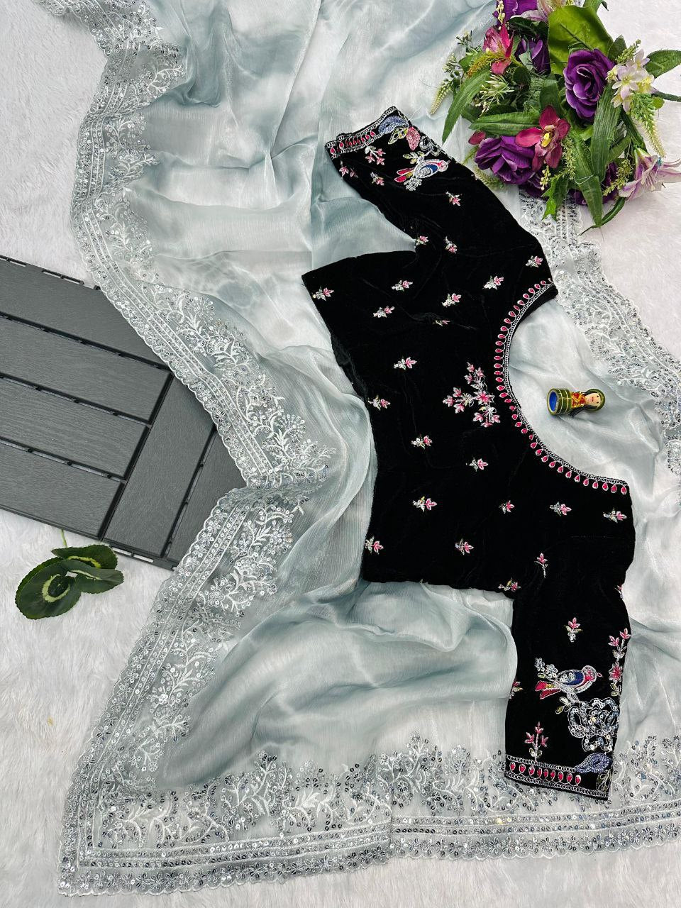 Blouse Material: Velvet Blouse With Embroidery Work On Front & Back / Full Stitched Up To 42 Inch