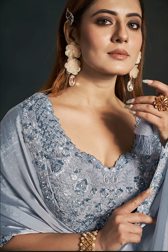 Gray Stylish Pre-Stitched Saree With Belt | Original Saree