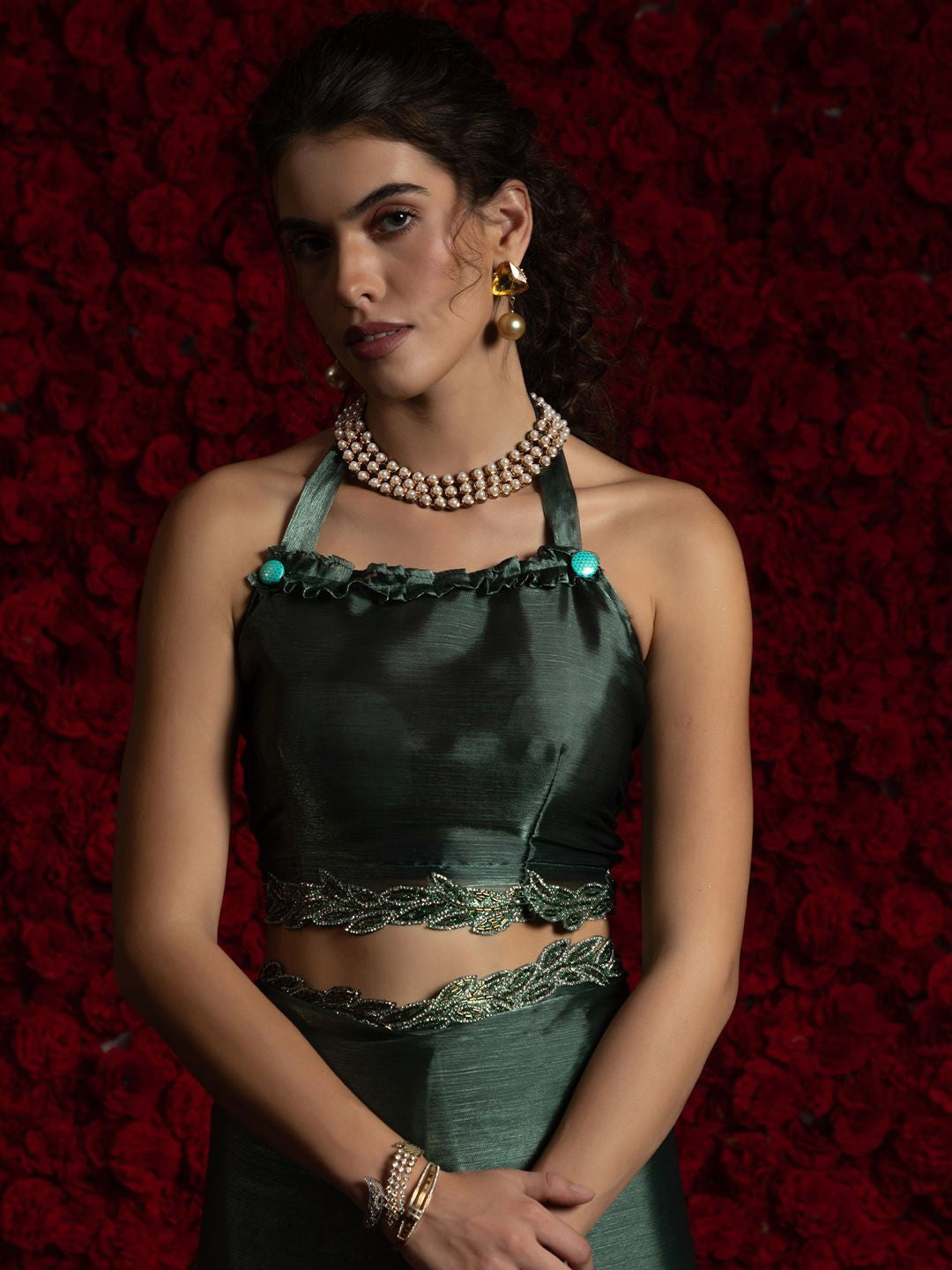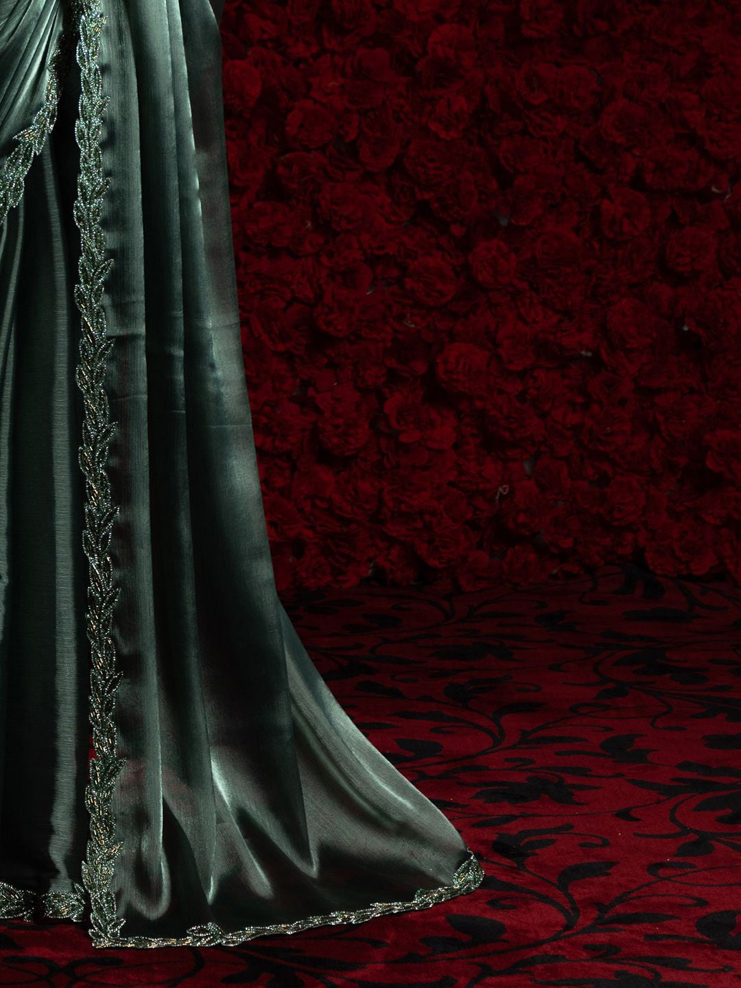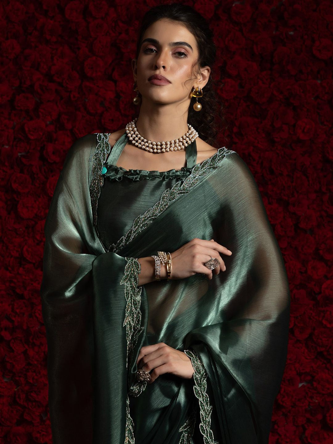 Green Party Wear Tissue Chiffon Saree | 100% Original Saree