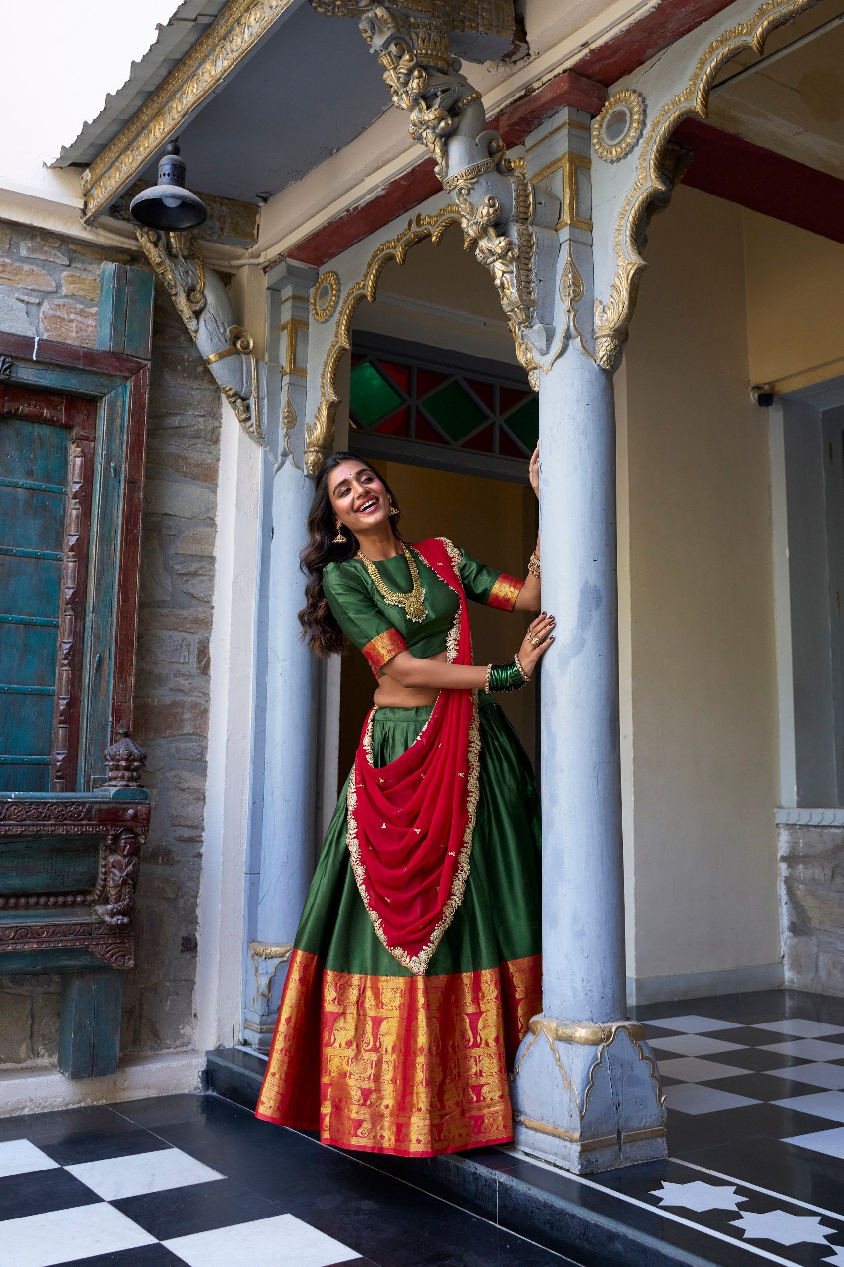 Green Traditional South Indian Lehenga