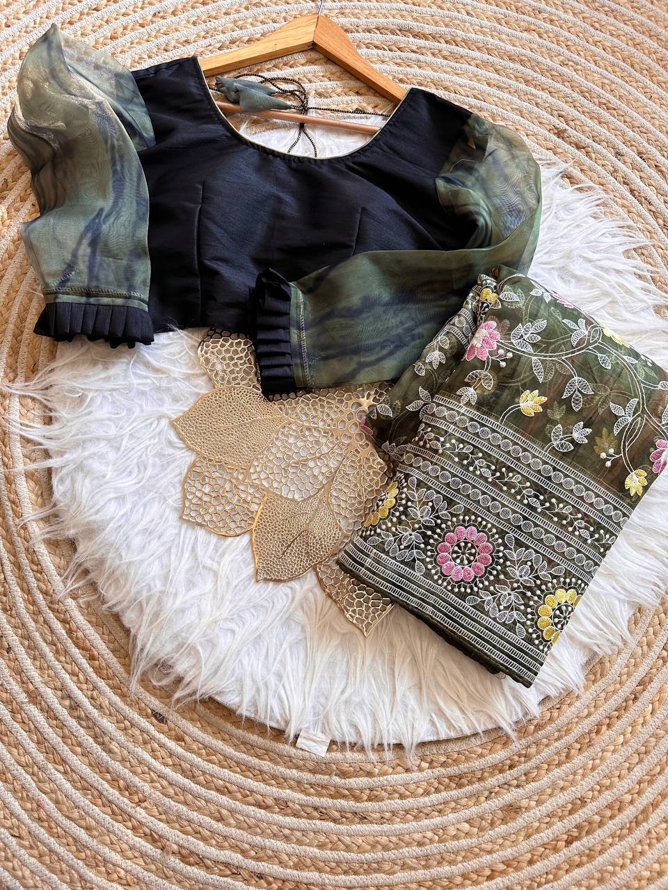 - Embroidery Organza Saree: Intricate details for a timeless look.