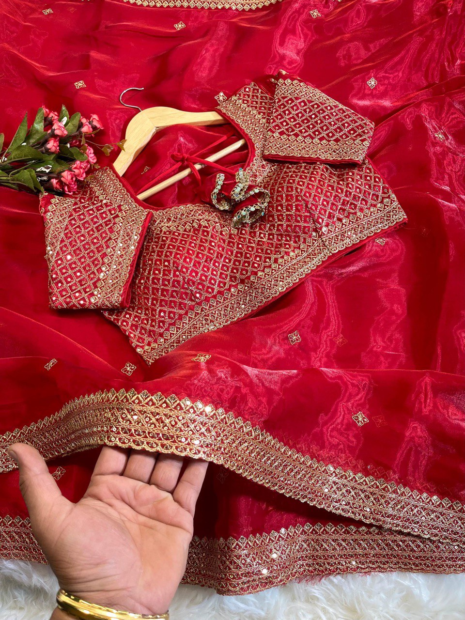 Blouse Material: Paired With Fully Stitched Full Embroidery Work Heavy Blouse On Running Fabrics