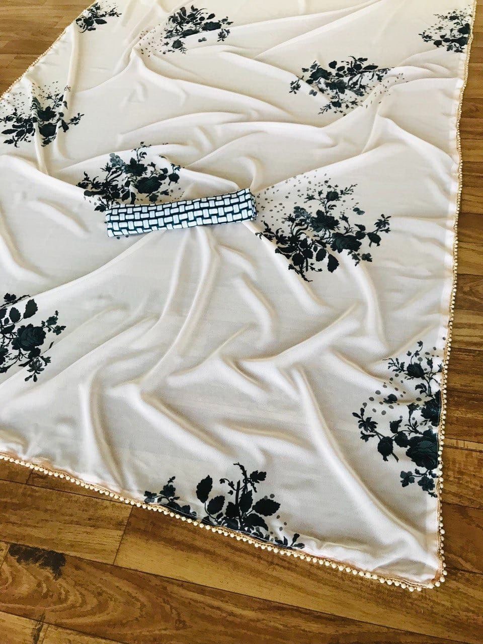 - Floral Print Georgette Saree – A trendy and fresh look for festive wear.