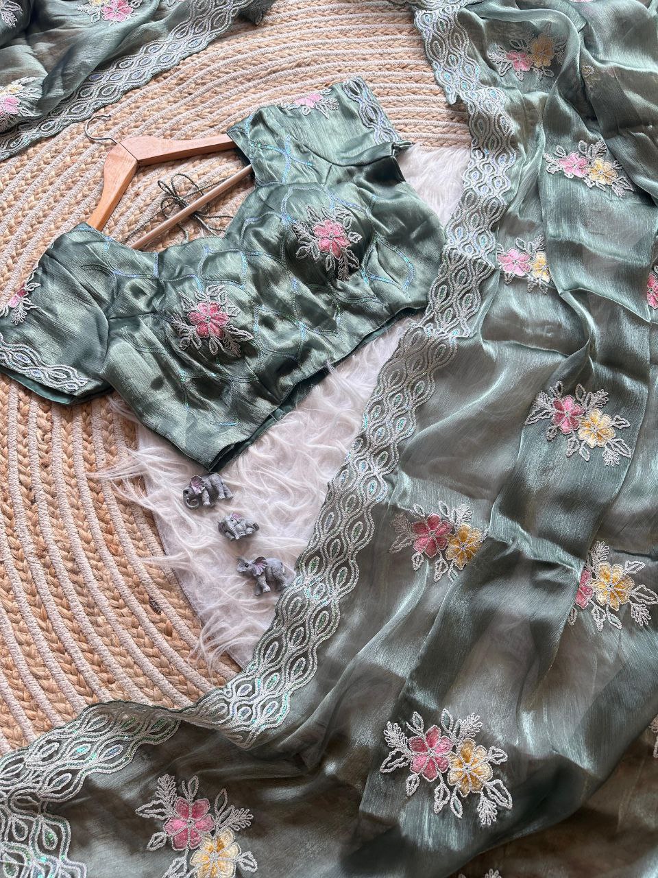 Blouse Material: Paired With Jimmy choo Chiffon Silk Blouse With Embroidery Work