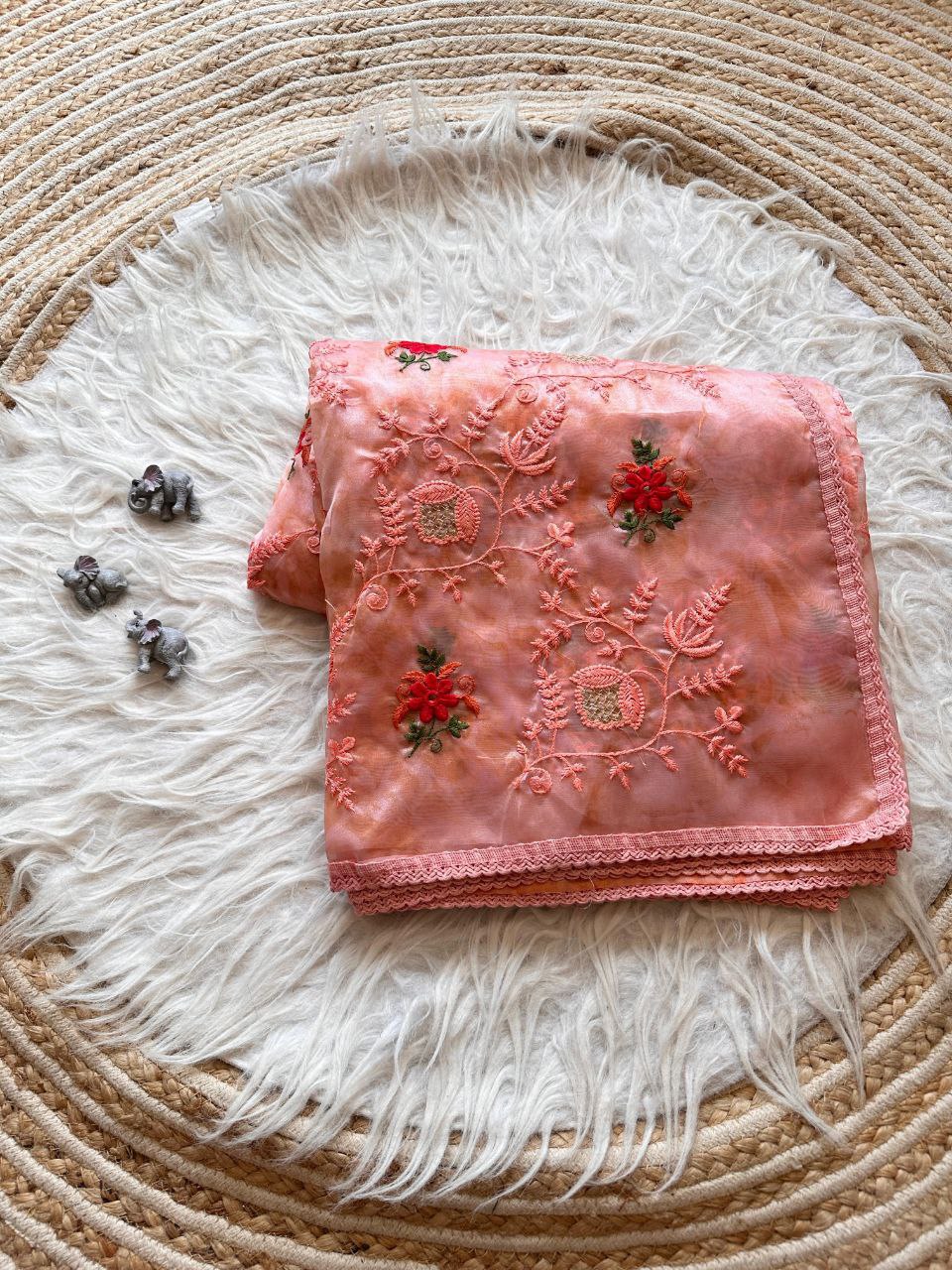 Explore our exquisite range of organza sarees, perfect for weddings and parties. Discover designer pieces with embroidery, trendy blouse designs, and floral patterns.
