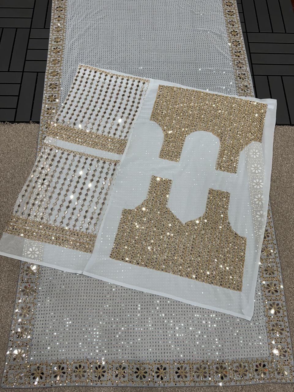 Blouse Material: Heavy Faux Georgette Blouse With Heavy Embroidery Front & Back With Sleeves With Heavy Original Mirror
