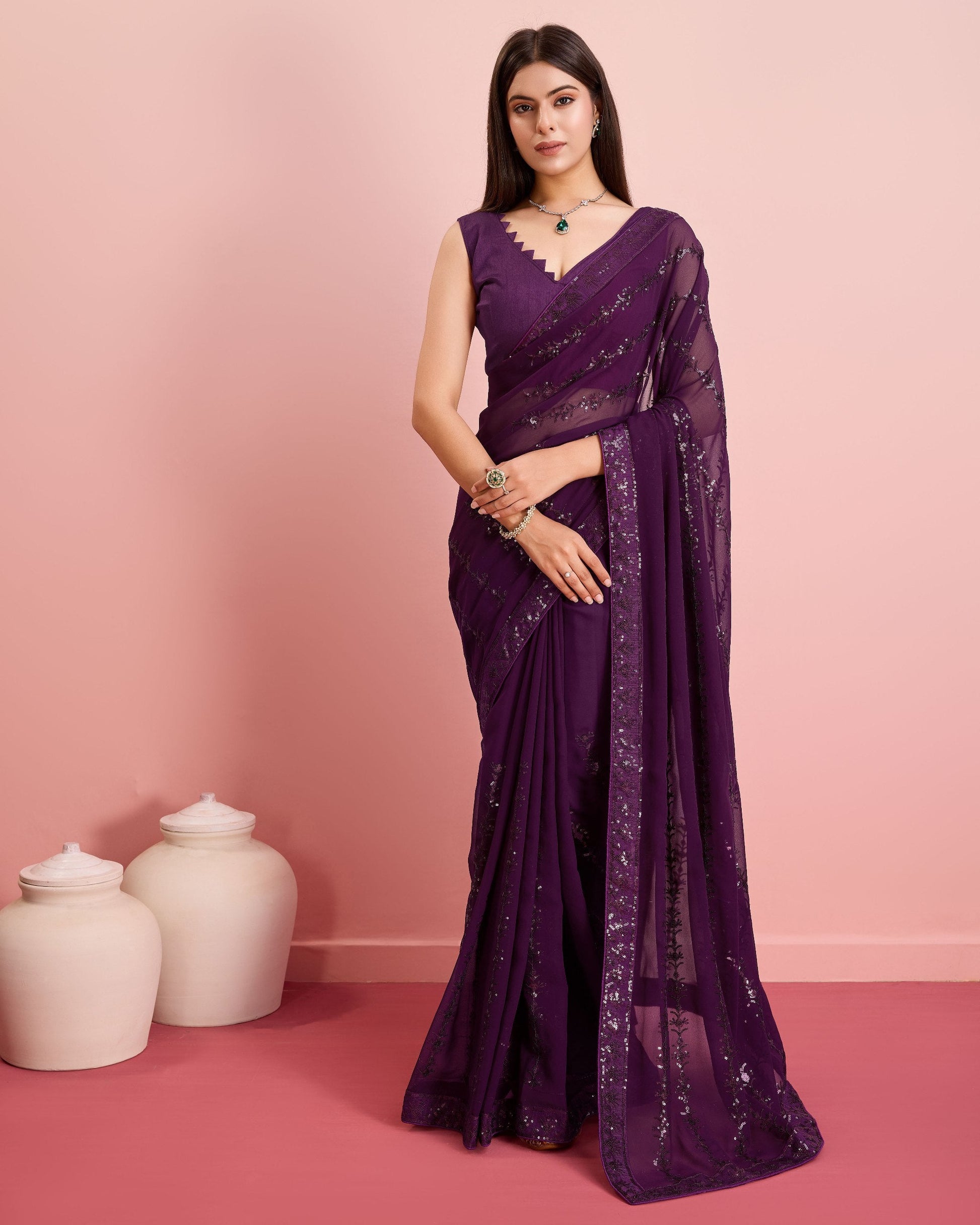 - High-Quality Fabric: Made from premium georgette, these sarees are lightweight, comfortable, and easy to drape.