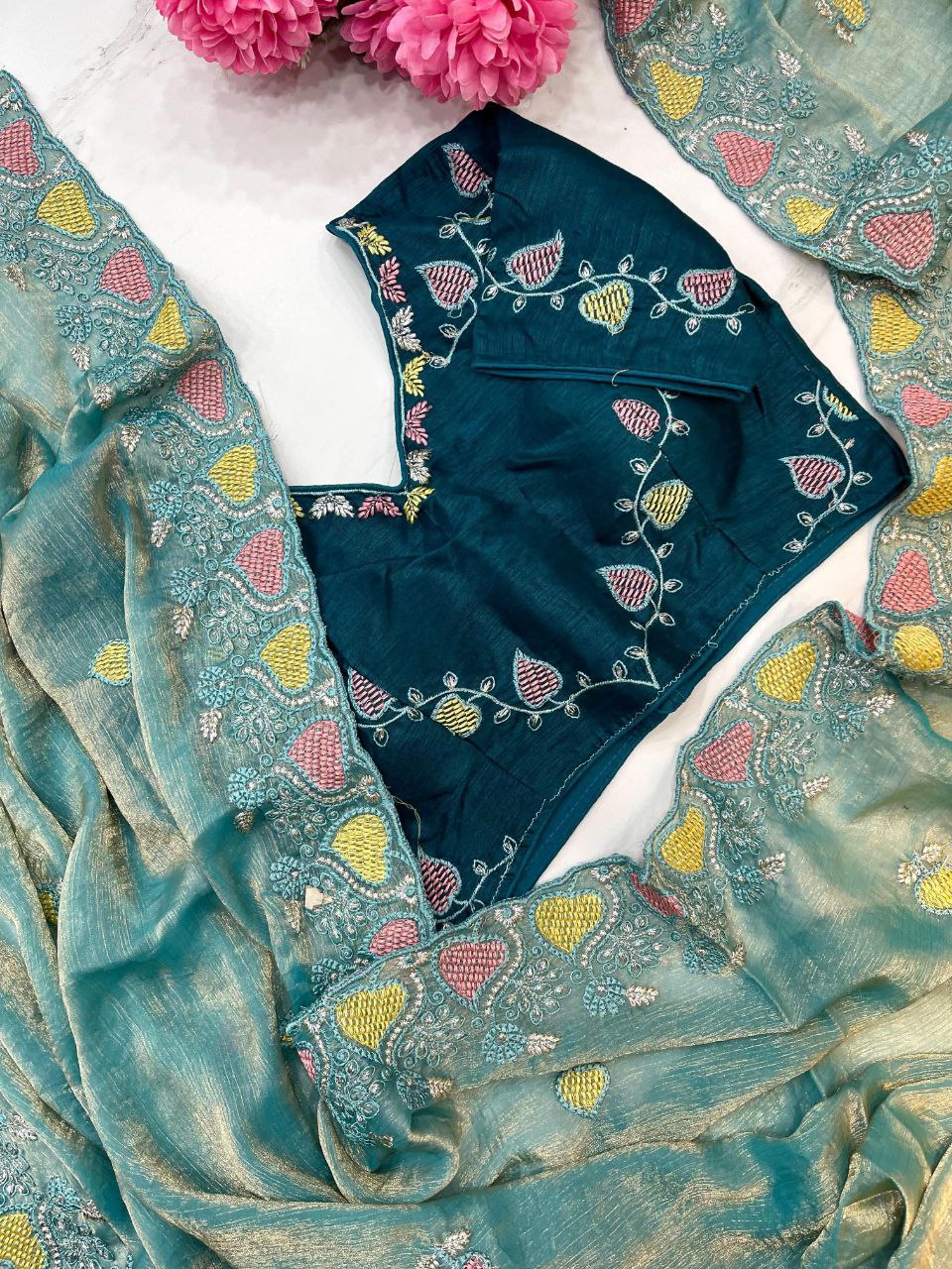 Blouse Material: Paired With Fully Stiched Embroidery Work Blouse On Silk Fabrics