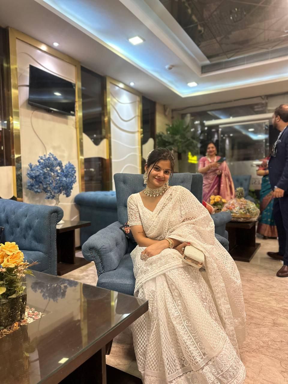 - Floral Organza Saree: Adorned with delicate floral patterns, ideal for day functions and garden parties.