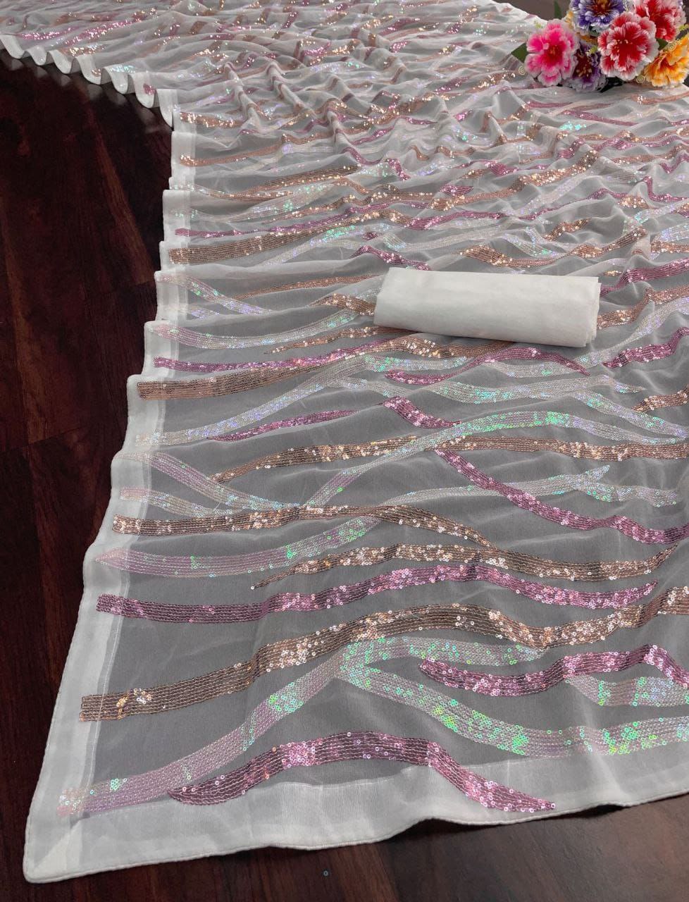 White Party Wear Sequence Georgette Saree